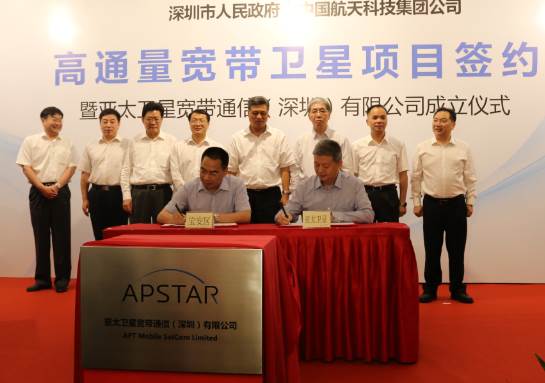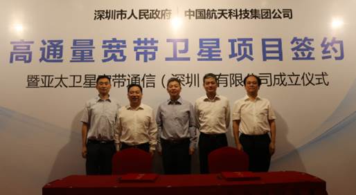 7月23日,高通量寬帶衛(wèi)星項目簽約暨亞太衛(wèi)星寬帶通信(深圳)有限公司成立儀式在深圳市舉行,標志著我國首個高通量寬帶衛(wèi)星通信系統(tǒng)啟動建設(shè)。廣東省委副書記、深圳市委書記馬興瑞,中國航天科技集團公司黨組書記、董事長雷凡培為亞太衛(wèi)星寬帶通信(深圳)有限公司揭牌,中國國新控股有限責(zé)任公司總經(jīng)理莫德旺應(yīng)邀出席本次簽約儀式并講話。