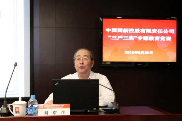 根據(jù)黨中央、國資委黨委和中國國新控股有限責(zé)任公司(以下簡稱中國國新)黨委“三嚴(yán)三實”專題教育工作部署,5月29日,中國國新黨委書記、董事長劉東生同志以《認真開展“三嚴(yán)三實”專題教育 促進中國國新改革發(fā)展》為題講授專題黨課。公司領(lǐng)導(dǎo),中央企業(yè)專職外部董事,總部資深經(jīng)理、投資總監(jiān)、專員及以上管理人員,所出資企業(yè)領(lǐng)導(dǎo)班子成員和相關(guān)部門工作人員參加了黨課學(xué)習(xí)。國資委黨建局有關(guān)同志到會指導(dǎo)。