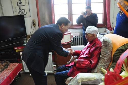 為倡導(dǎo)孝親敬老之風(fēng),2017年3月31日上午,華星集團(tuán)總經(jīng)理?xiàng)畹钪性陔x退休管理服務(wù)中心主任邊建華、黨委副書記馬偉風(fēng)等同志的陪同下,帶著慰問金、花籃和生日蛋糕,看望慰問了集團(tuán)成立以來第一位百歲壽星——原機(jī)電公司離休干部李夫同志。